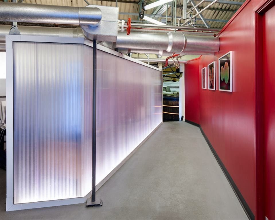 At the core of Twinfix’s vertical glazing range is the Multi-Click system, a purpose-designed solution that combines robust aluminium framing with lightweight, high-performance polycarbonate panels. The 40 mm X-structure panels interlock seamlessly within a thermally broken frame, creating a clean, uninterrupted façade with excellent light transmission and a contemporary aesthetic. UV protection on both sides ensures long-term durability, while the panel design diffuses natural light to deliver a bright, glare-free internal environment.