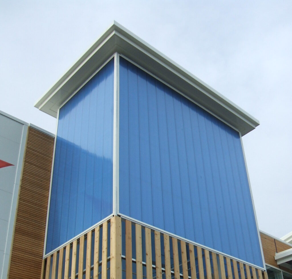 Polycarbonate’s impact resistance ensures a safe, shatter-resistant alternative to glass, ideal for use in public areas such as schools, hospitals, and transport hubs. The lightweight nature of the panels simplifies installation, reduces structural loading, and helps minimise construction time.